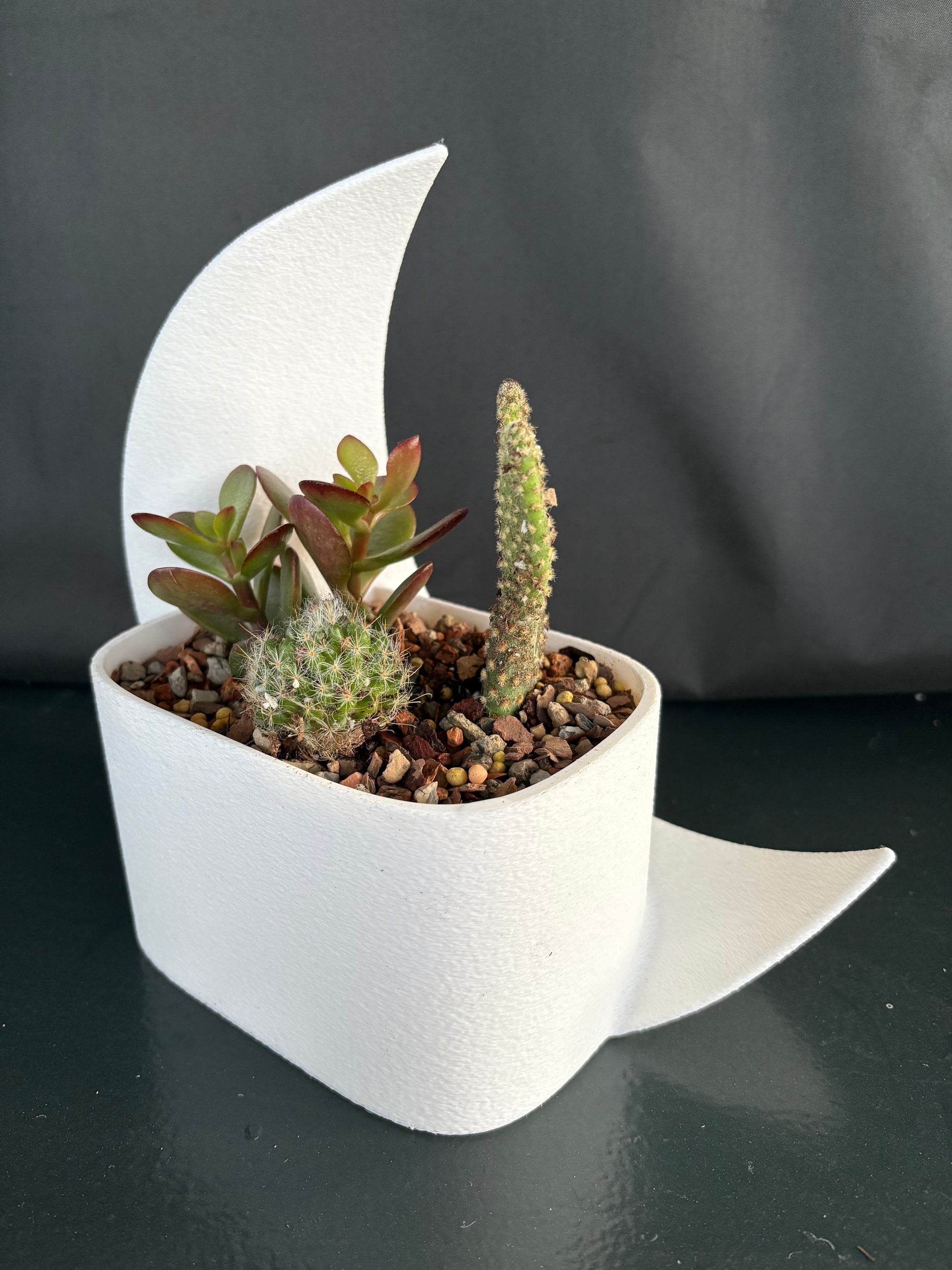Infuse your home with cosmic elegance. Our intricately designed crescent moon planter is more than just a pot – it's a statement piece. Crafted with care and featuring a vital drainage hole for optimal plant well-being, it's the perfect blend of style and functionality. Elevate your plant display.