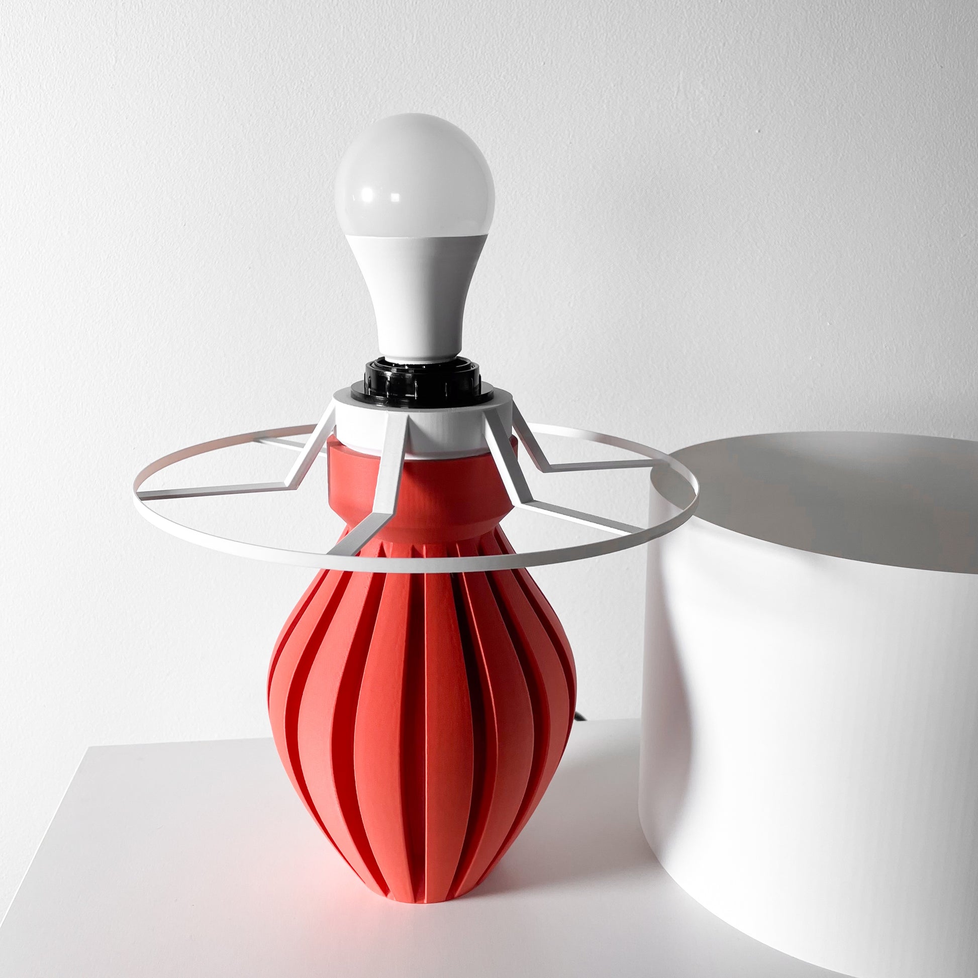 The Okomi Lamp, stunning ribbed detail as the light for shadows the design. Uses a e26 led light and comes fully wired with a 8’ cord with switch. Always use an led light bulb. Available in a many colors.