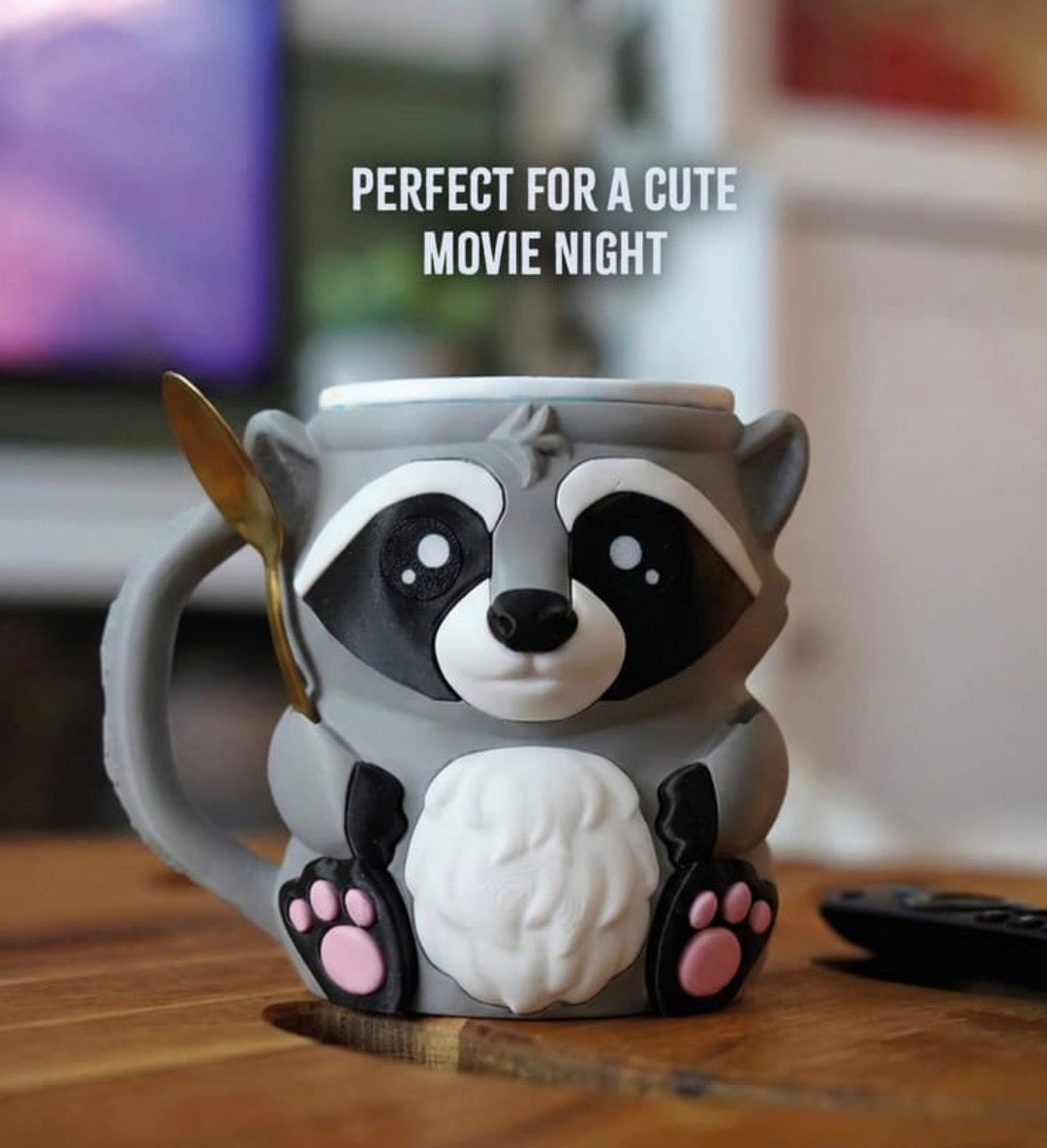 Rocky the Raccoon- keeps your hands cozy while your ice cream stays perfectly chilled. This clever, multi-part design brings adorable charm and everyday function to your dessert time. Has a slide out tray to hold the additional snacks and a spot to hold your spoon. Fits Ben and Jerrys and Häagen-Dazs Pint size containers.