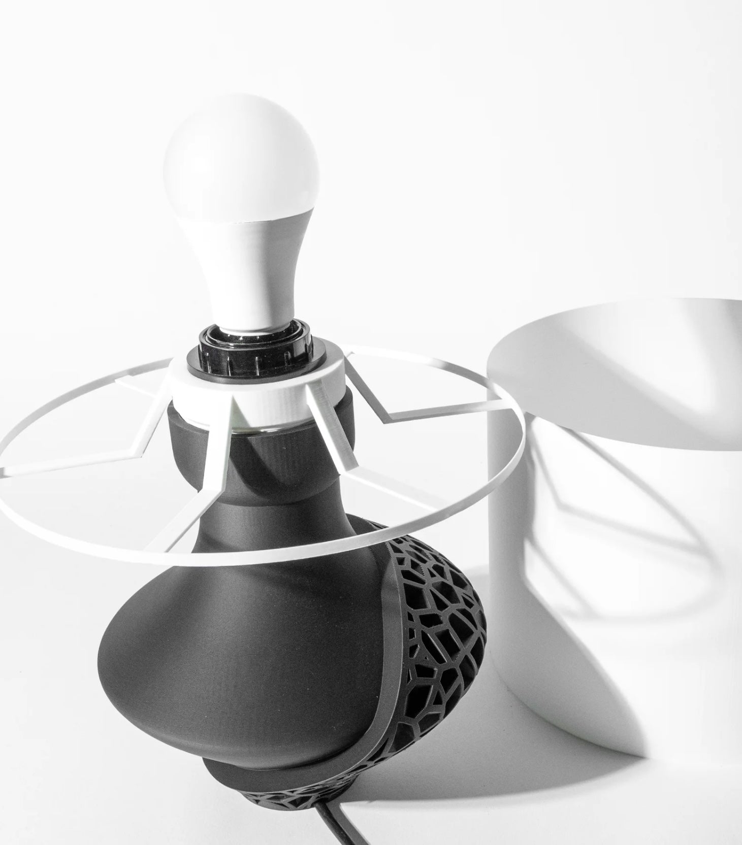 The Vori Lamp, Modern and Unique Home Decor. Stunning detail as the light for shadows the design. Uses a e26 led light and comes fully wired with a 8’ cord with switch. Always use a led light bulb. Available in a many colors.
